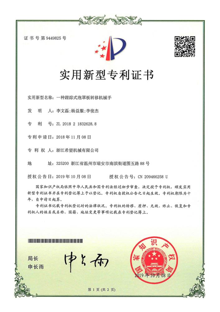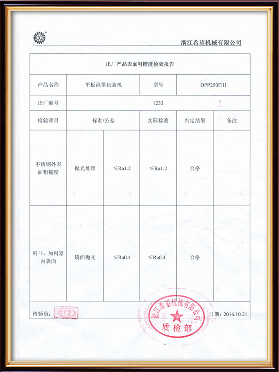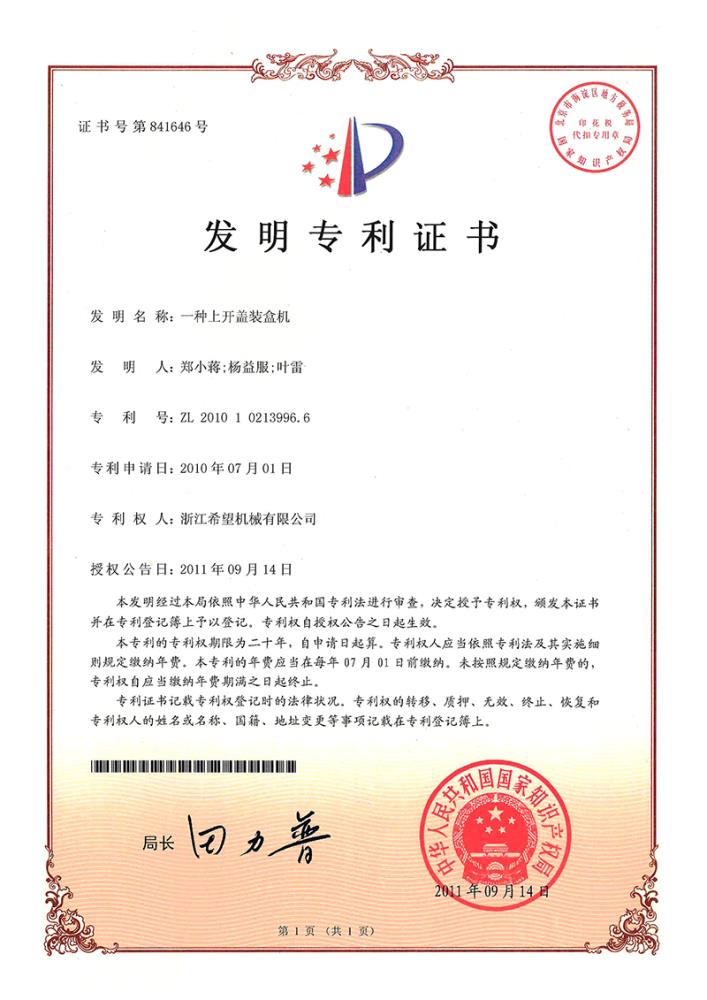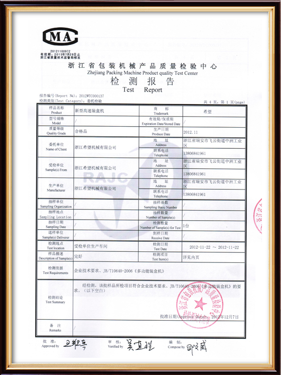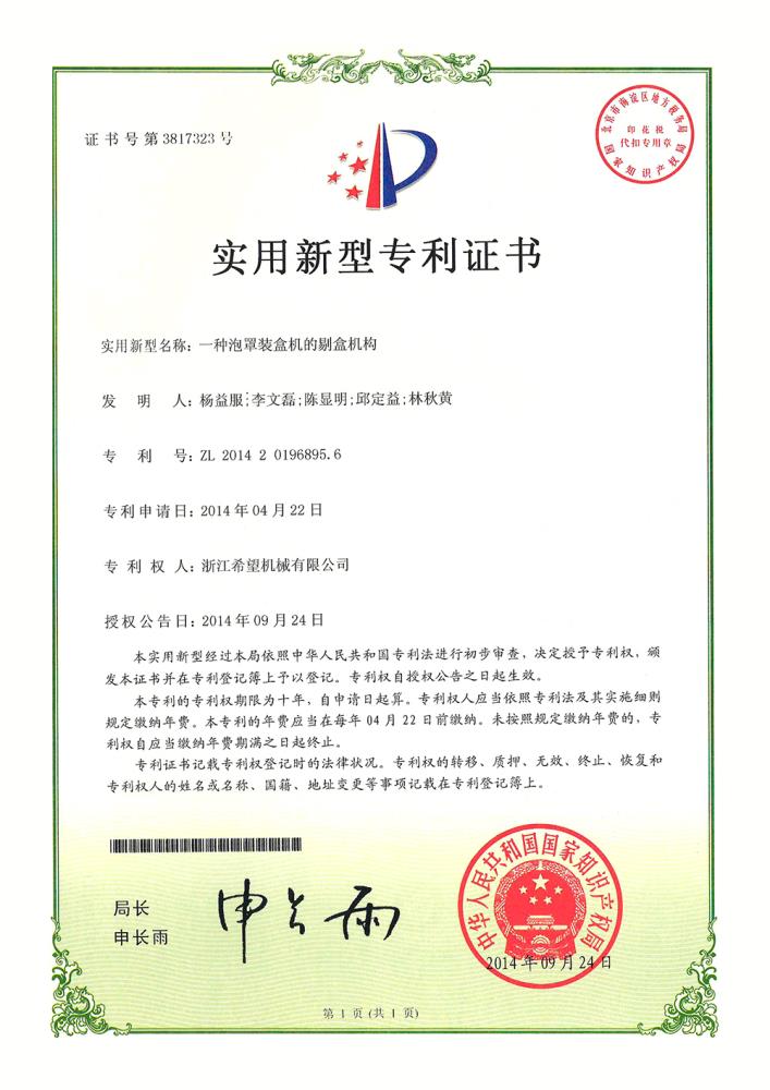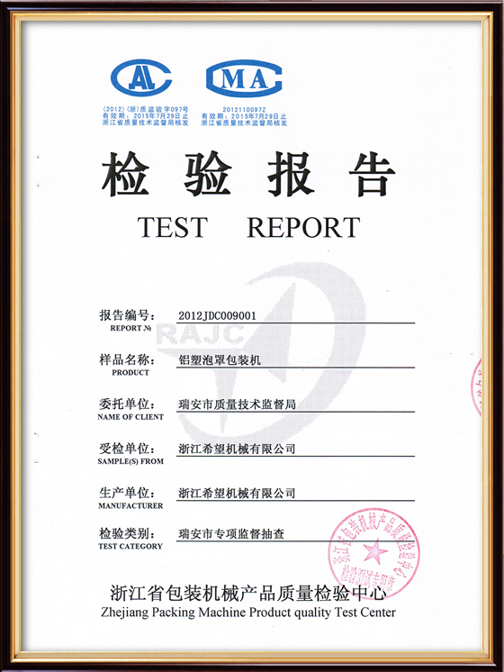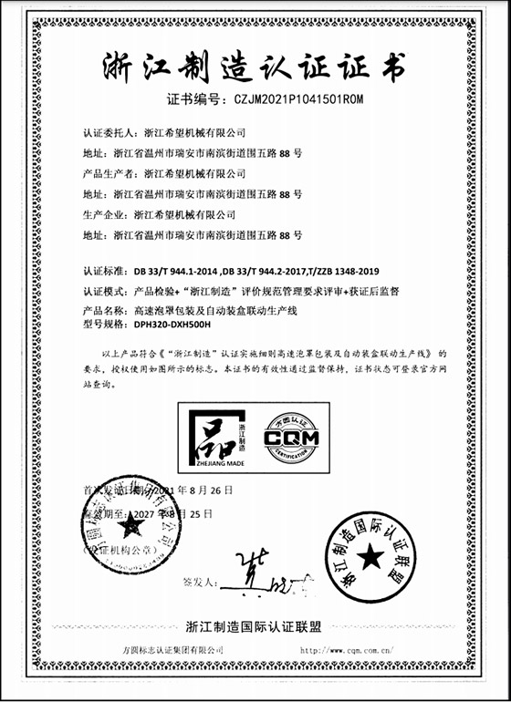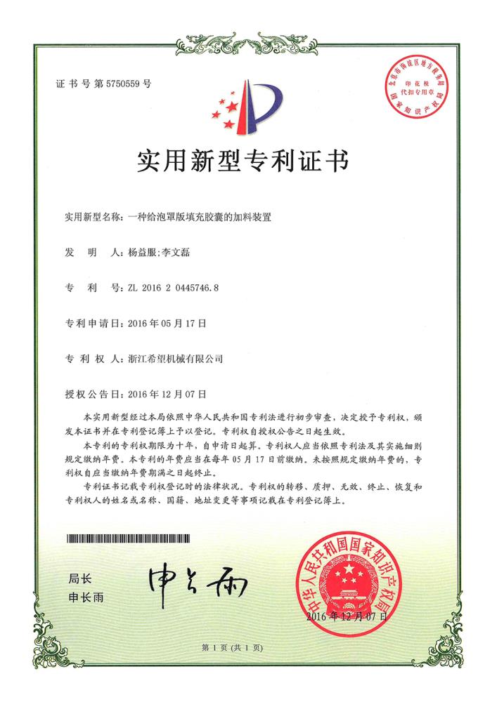 2016年“DHL600高速泡罩裝盒一體機”獲浙江省首臺套產(chǎn)品榮譽稱號。