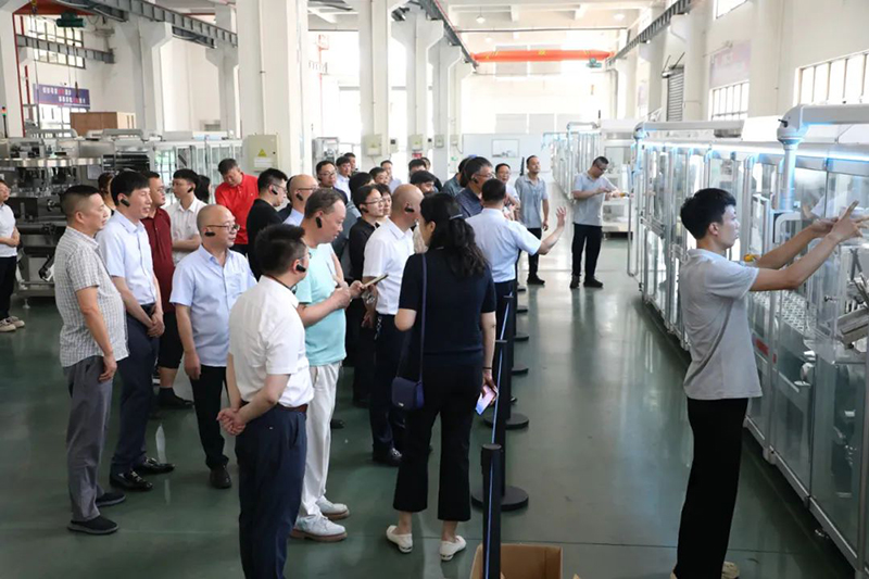 會議期間,與會人員走進希望公司,實地考察全自動泡罩裝盒一體機運行情況。