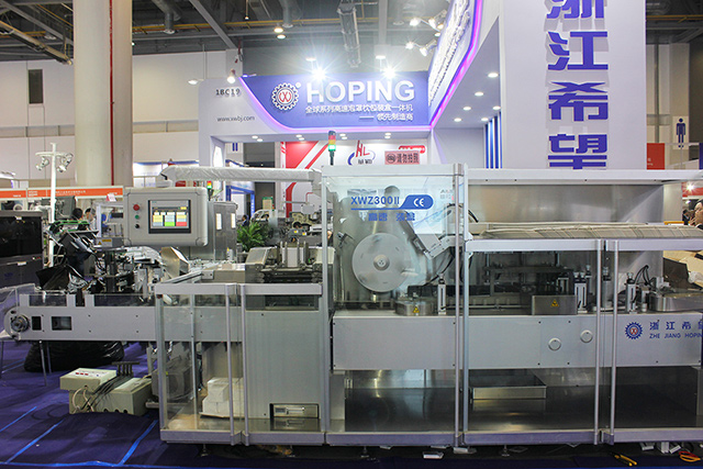 展會現(xiàn)場,浙江希望展出了DPH320HII全伺服高速輥板泡罩包裝機(jī)、XWZ300Ⅱ高速裝盒機(jī)、全自動泡罩裝盒包裝生產(chǎn)線等。