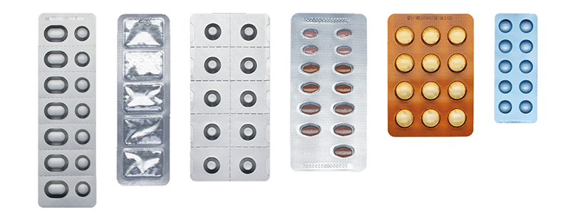 | 卷型包裝材料 | PVC/PVDC/PET/PE/ACLAK | 單面涂膠鋁箔(PTP)背封材料 |